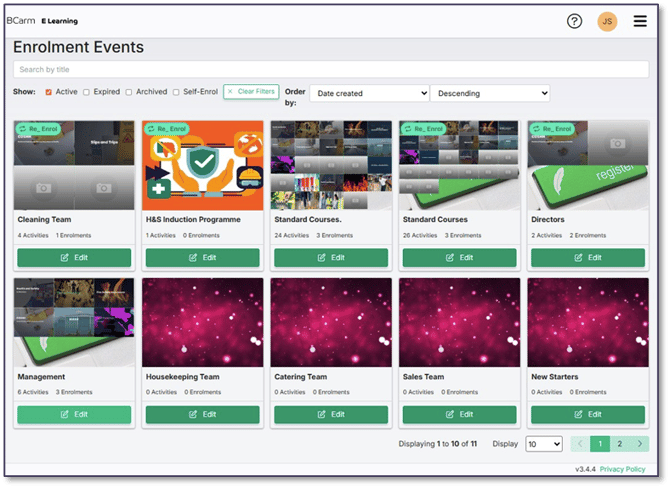 1. Go to the E-Learning menu and open ‘Enrolment Events’. (If you can’t find it, it’s under Organisation > Enrolment Events).