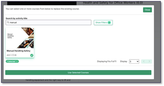 5. In some cases, like with the Manual Handling course, the ‘Use Existing’ option will be greyed out.